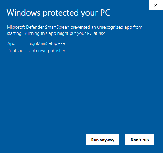 - Run the file you extracted “SignMainSetup.exe”